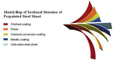 4. Hot-dip galvanized steel panel has undergone the treatments of surface degrease, parkerizing and chromating. It is then coated with organic coatings. The coating quality is more uniform, more stable and more ideal than single spraying or brushing.